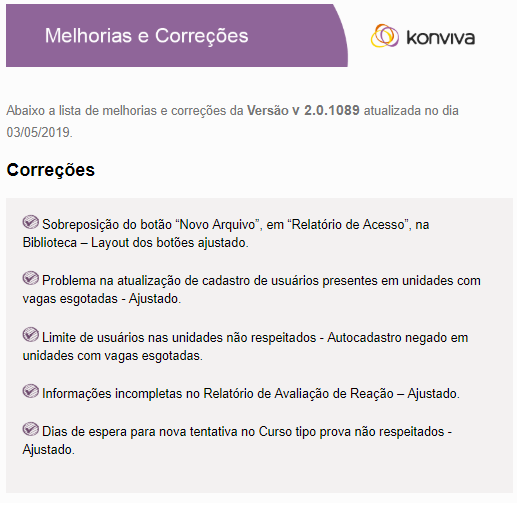 Versão 2.0.1089 atualizada no dia 03/05/2019