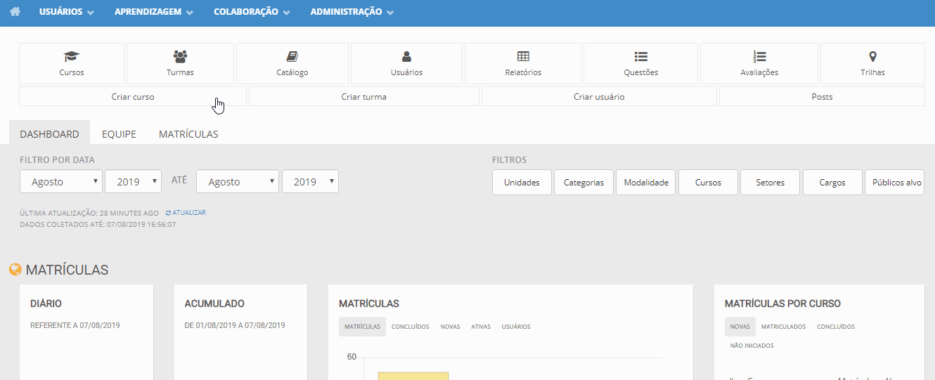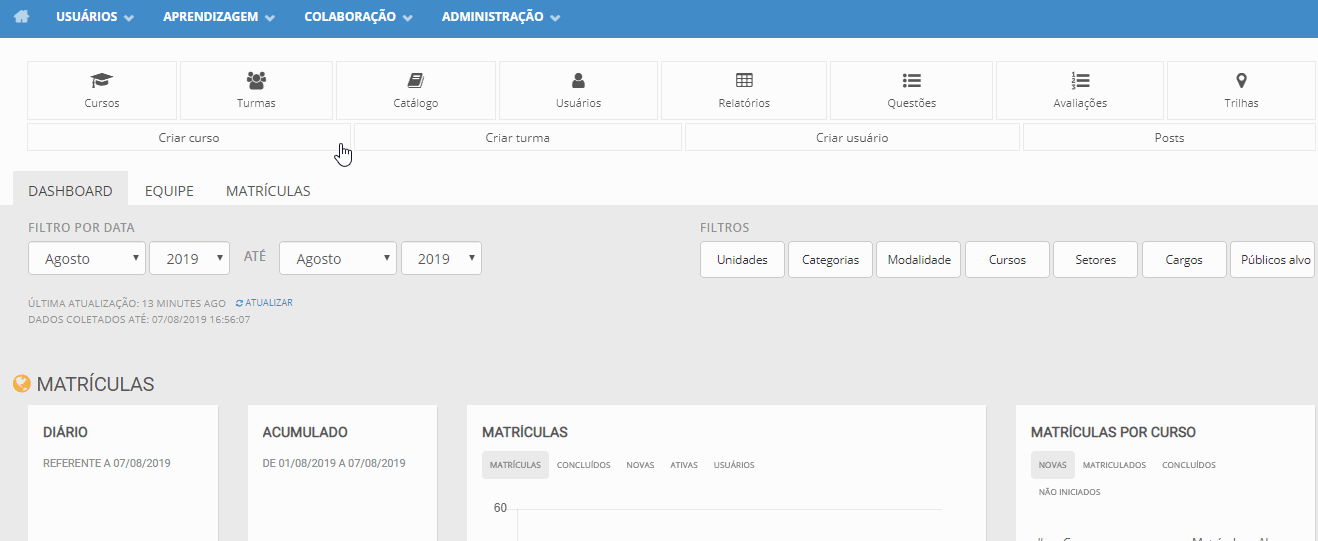 O termo de aceite é um documento que o aluno deverá aceitar ao se matricular em um curso ou logar no sistema, caso este esteja configurado e ativado. Para configurar ou criar um novo termo, você pode acessa-lo a parti do menu Usuários>Termos. Você pode criar termos do tipo curso ou do tipo sistema.