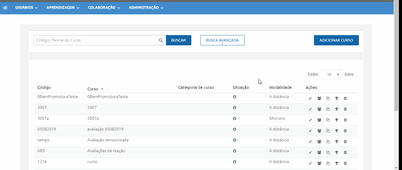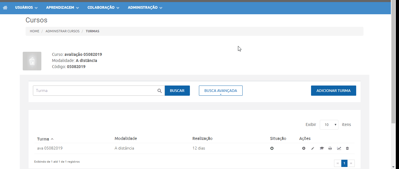 O Konviva permite o usuário a uma busca mais complexa, com vários parâmetros de busca dentre alguns deles, Nome de curso, Unidades, Turma, variando de acordo com o módulo. Para conseguir buscar um curso, turma, que esteja inativo, você deve utilizar a busca avançada para a exibição.