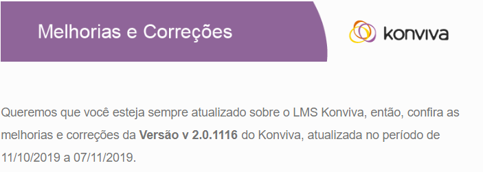 Versão 2.0.1116 atualizada no dia 07/11/2019