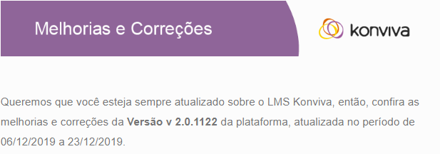 Versão 2.0.1122 atualizada no dia 23/12/2019