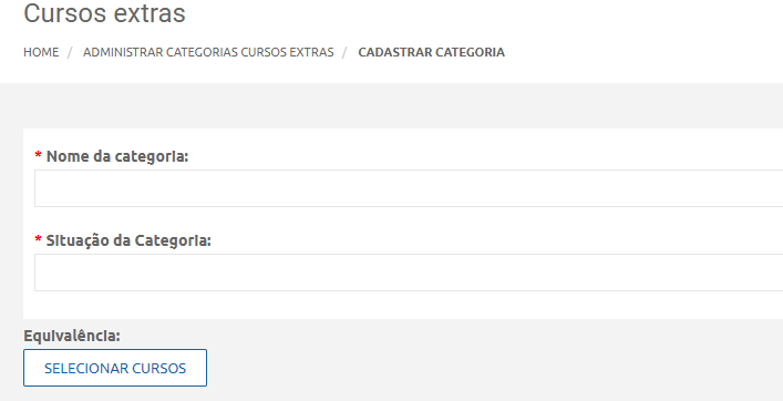 No cadastro da categoria, é possível ainda cadastrar um curso equivalente :
