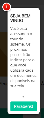 7. O tour aparecerá para o aluno inicialmente , o aluno deve iniciar para seguir a ordem configurada do Tour.