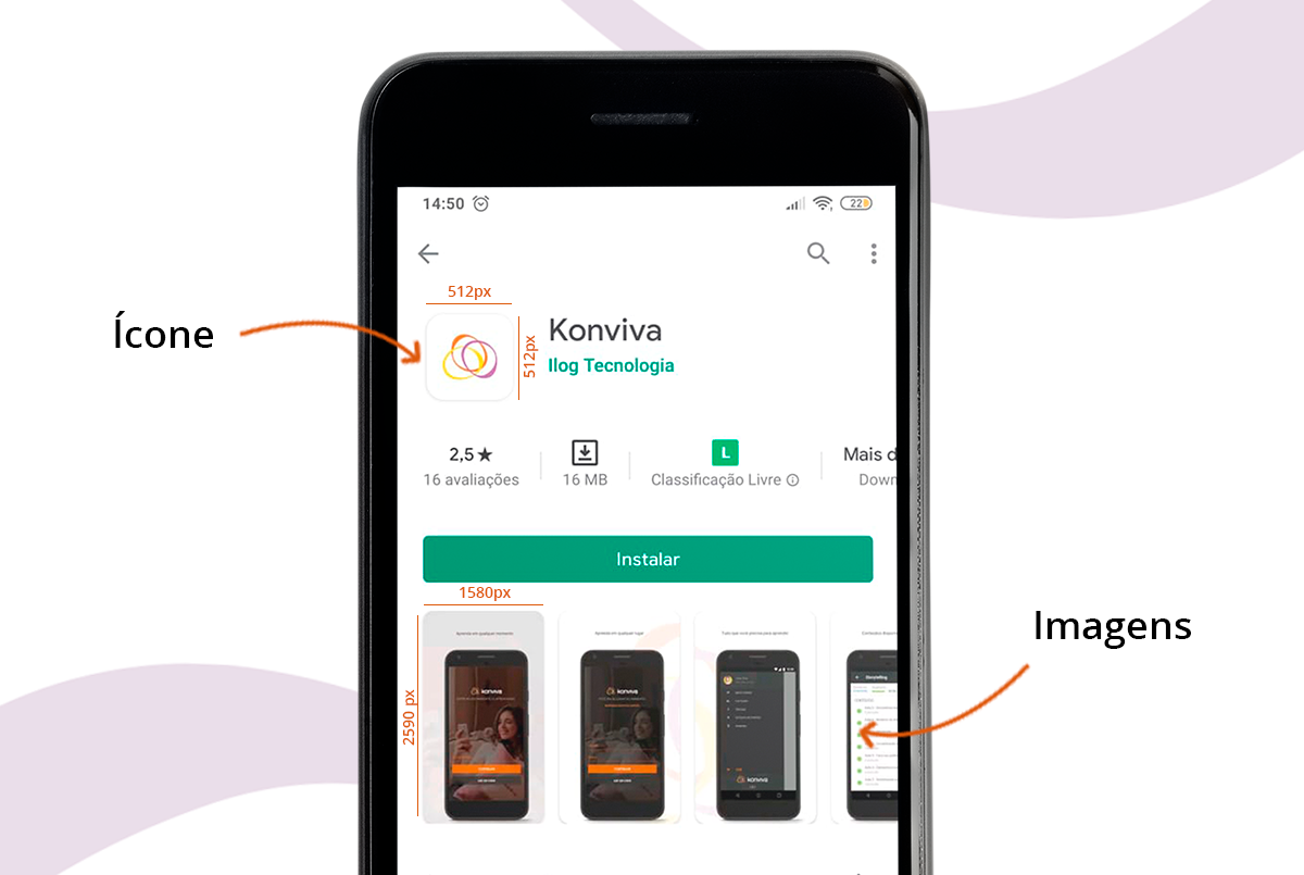 Antes de ir para a segunda etapa, uma exceção: tanto na Play Store quanto na Apple Store, algumas imagens específicas para publicação de aplicativos. Portanto, todo o aplicativo personalizado contratado exige que essas imagens sejam usadas. Para facilitar o processo, use como padrão as impressões do aplicativo já com uma identidade visual do cliente aplicada e feche como imagens solicitadas. Se você desejar definir essas imagens de outra maneira, estas são as especificações: