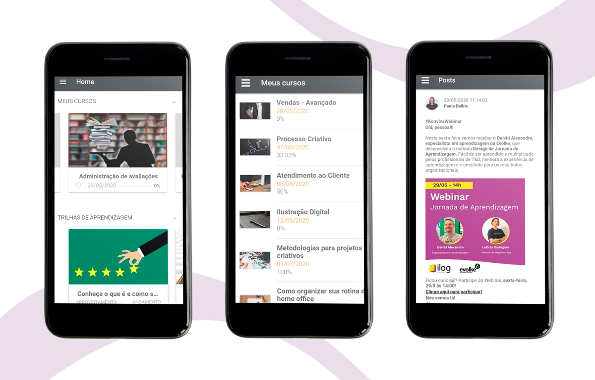 Se você utiliza o Konviva, saiba que possui o aplicativo disponível para Android e iOS. É só procurar por "Konviva" na Play Store ou na Apple Store, baixar e começar a usar! Nosso aplicativo tem foco no usuário com perfil de aluno, assim ele pode acessar a plataforma a qualquer hora e em qualquer lugar.