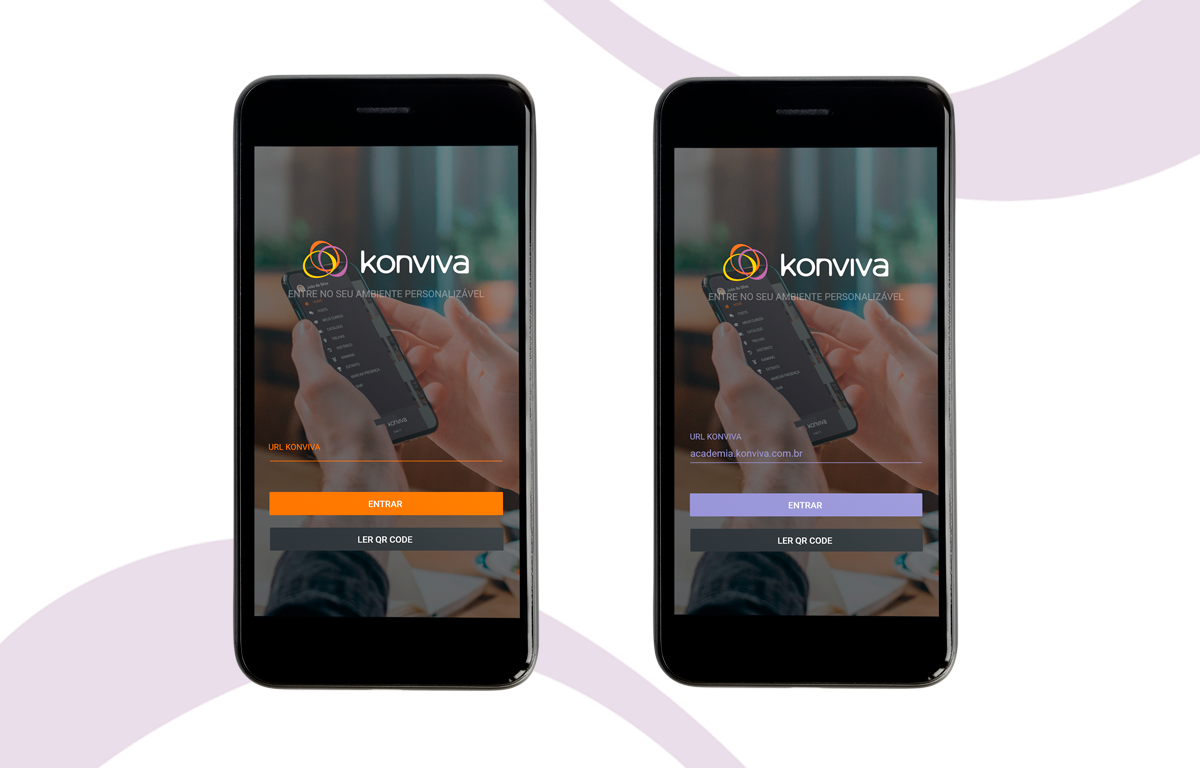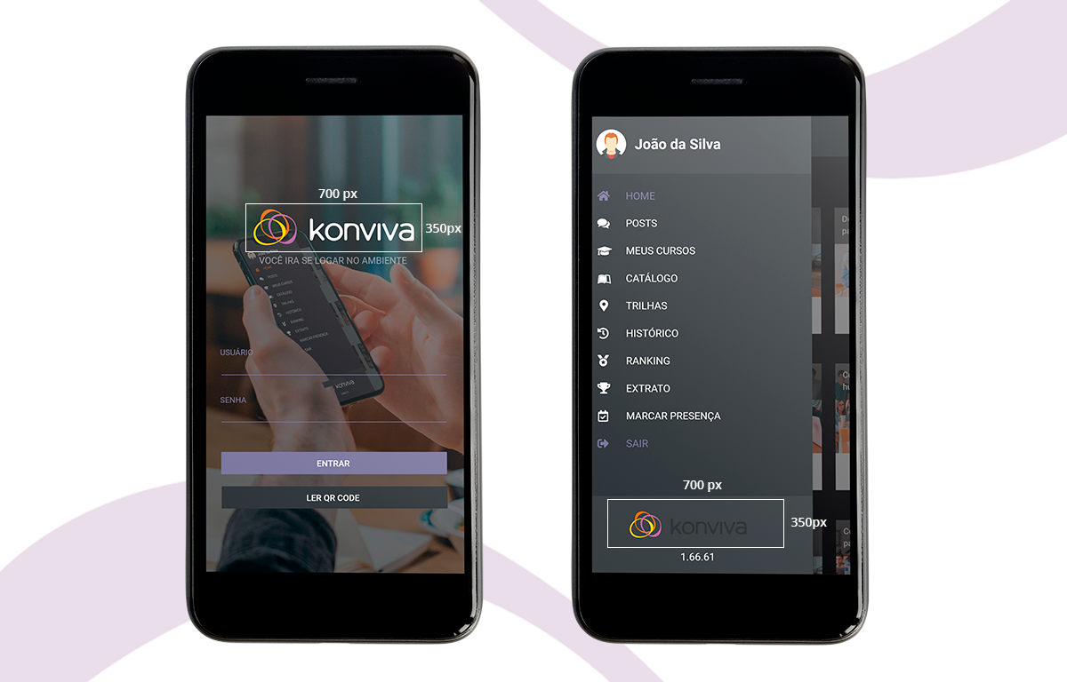 Obs: se você deseja manter a mesma identidade visual do ambiente da web, não precisa se preocupar com essas configurações. Por padrão, o aplicativo utiliza o mesmo logotipo e o ambiente da web. Quanto imagem de fundo da tela de login, se você não quiser definir nada diferente, poderá usar nossa imagem padrão exemplificada nas imagens acima.