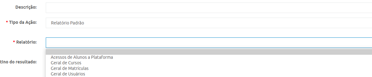 Ao selecionar o tipo de ação, novas informações serão carregadas na mesma tela. Aqui irei escolher o relatório de matrículas.