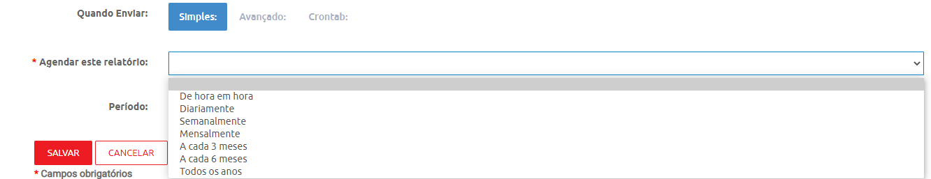 É possível também selecionar um período que o envio configurado será enviado pela opção "Periodo" :