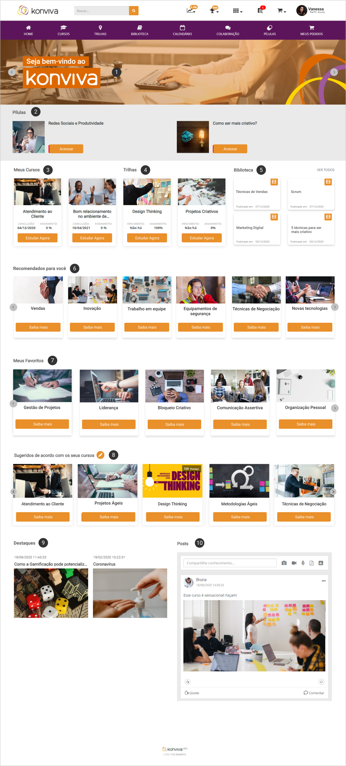 No Konviva existem muitas funcionalidades que podem ser habilitadas/ desabilitadas pelo administrador e que impactam diretamente no layout da página inicial do ambiente.