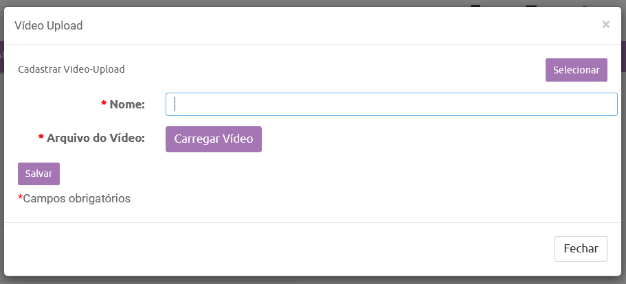 | Para fazer o upload de um vídeo, selecione o arquivo de vídeo na sua máquina e faça o upload. Comportamento do vídeo-upload: O sistema subirá o vídeo para o servidor streaming do Vimeo da Ilog e exibirá alerta que o vídeo está sendo convertido. No “Vídeo Upload”, o vídeo é exibido em uma tela dentro do aplicativo (apresentando o botão “Voltar” no canto superior direito para voltar à sala de aula).