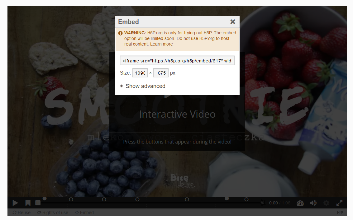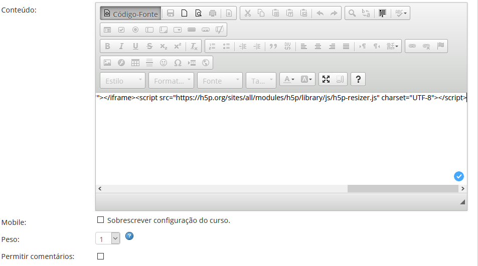 Você também pode incluir aqui os seus vídeos interativos, como os que são produzidos no H5P, por exemplo. A orientação é a mesma em todos os casos: copiar o código na origem.
