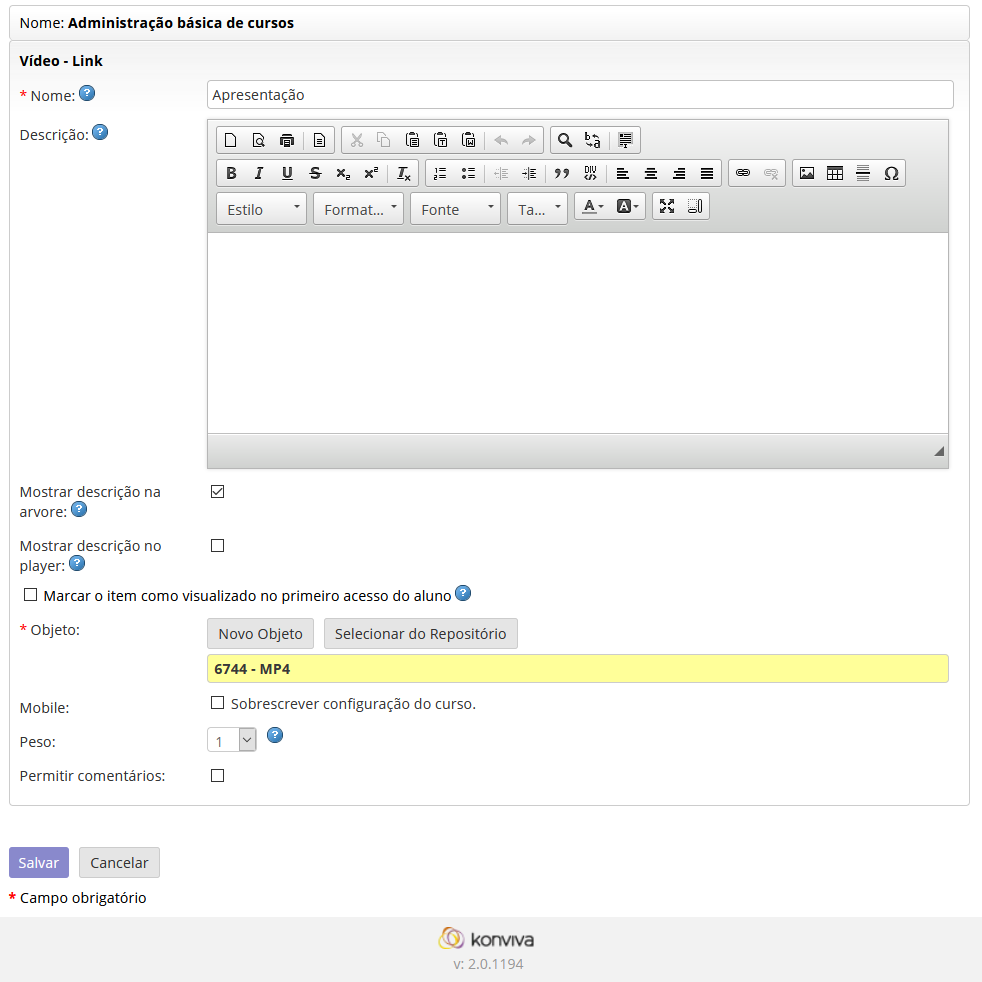 Basta copiar o link e cadastrar o novo objeto ou selecionar do repositório um vídeo-link que já tenha sido cadastrado.